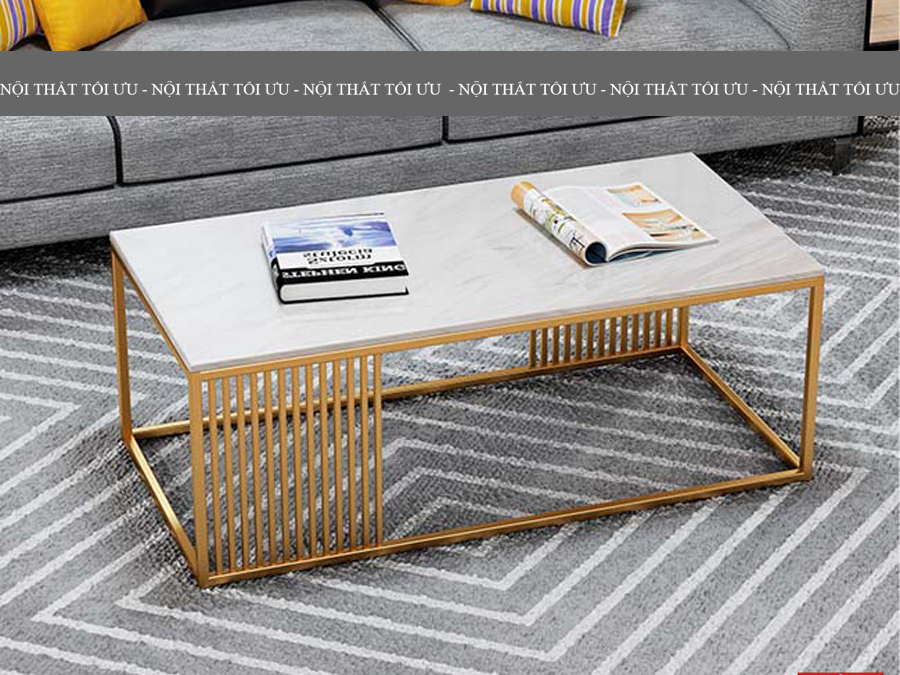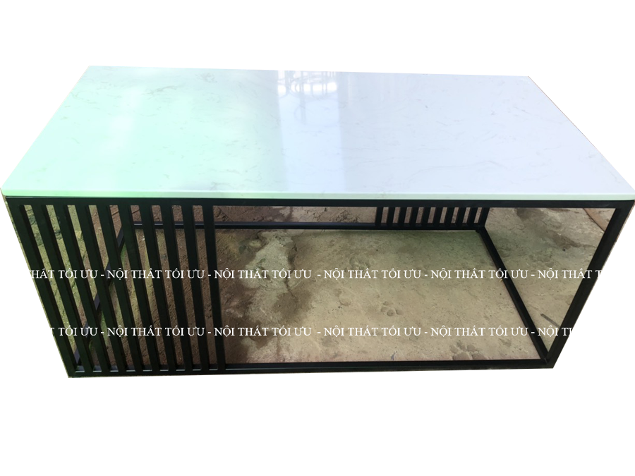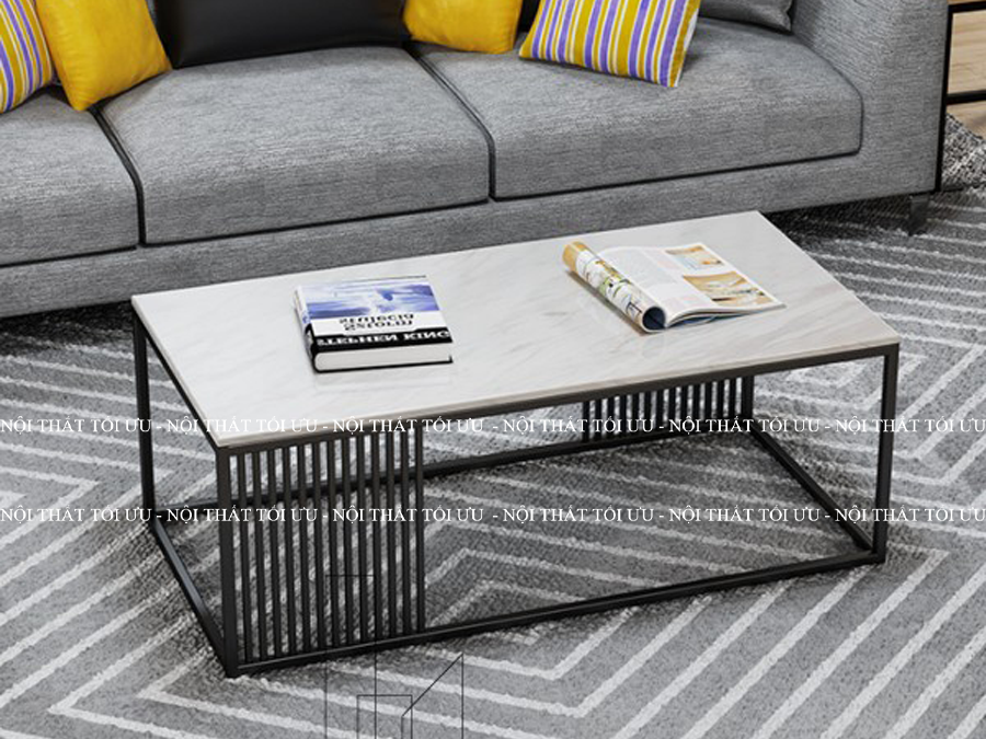 Bàn sofa mặt kính cường lực vân đá chân sắt mẫu 02